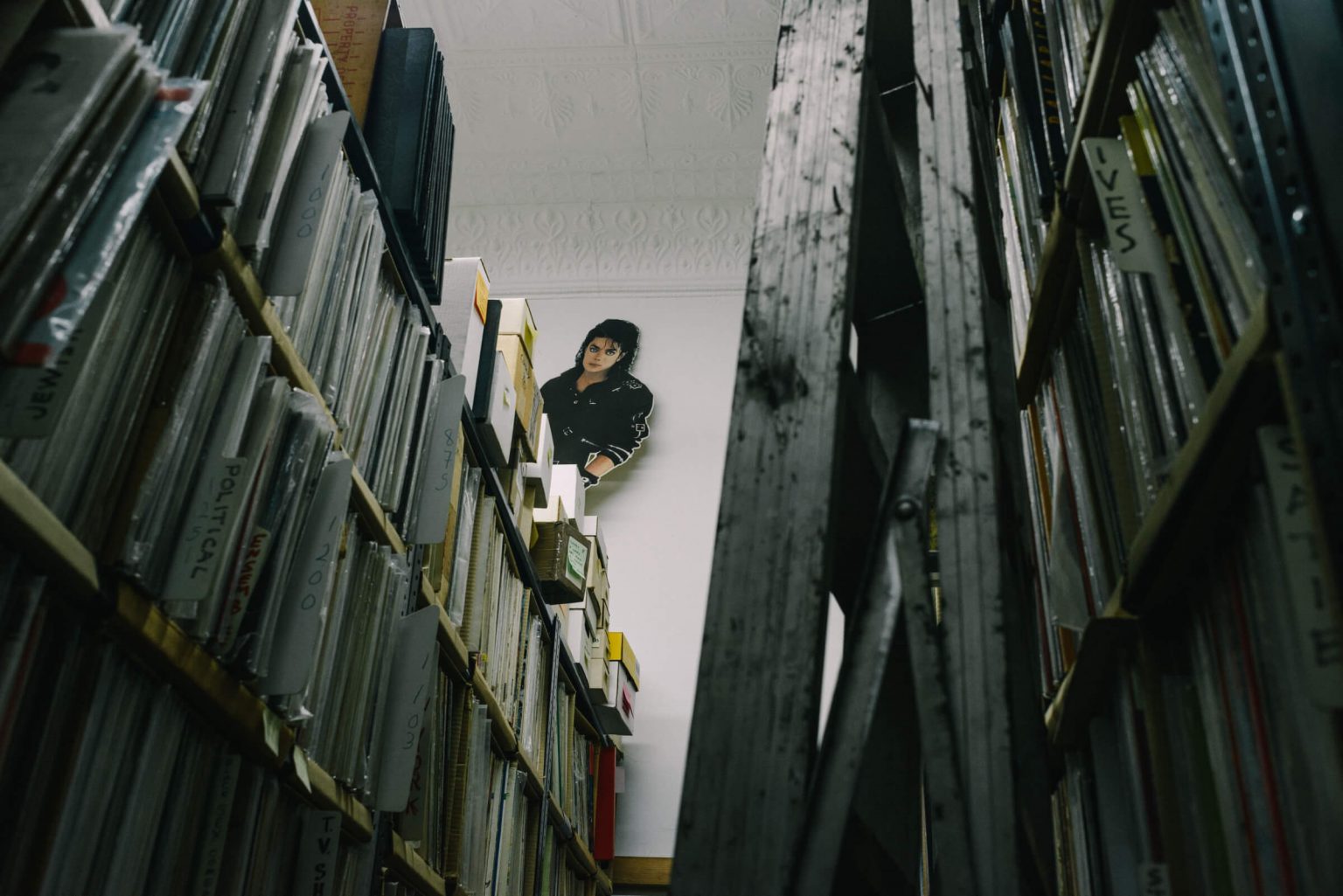 土地の高騰から家賃を払えず、数日後には35年間にいったん幕を引く。取材日は引っ越し準備の真っ只中だった。机に整列するEP盤の箱、整頓用のカラーテープの束、脚立、ダンボール箱にかろうじてしがみつく付箋、行き場を失ったマイコー(マイケル・ジャクソン)の視線が、一抹の哀しさを誘う。