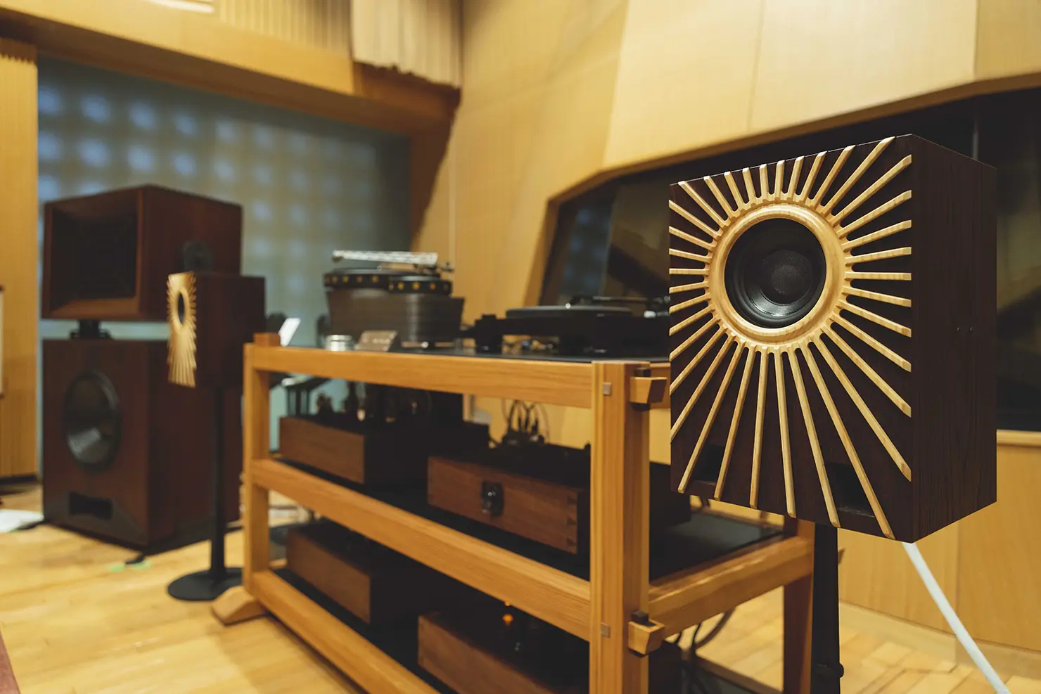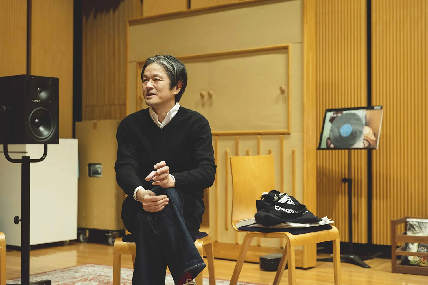 本対談はオーディオテクニカの社内スタジオにセッティングされた世界的音響ブランド『Oswalds Mill Audio』によるサウンドシステムで『六大』のラッカー盤を再生しながら実施された。