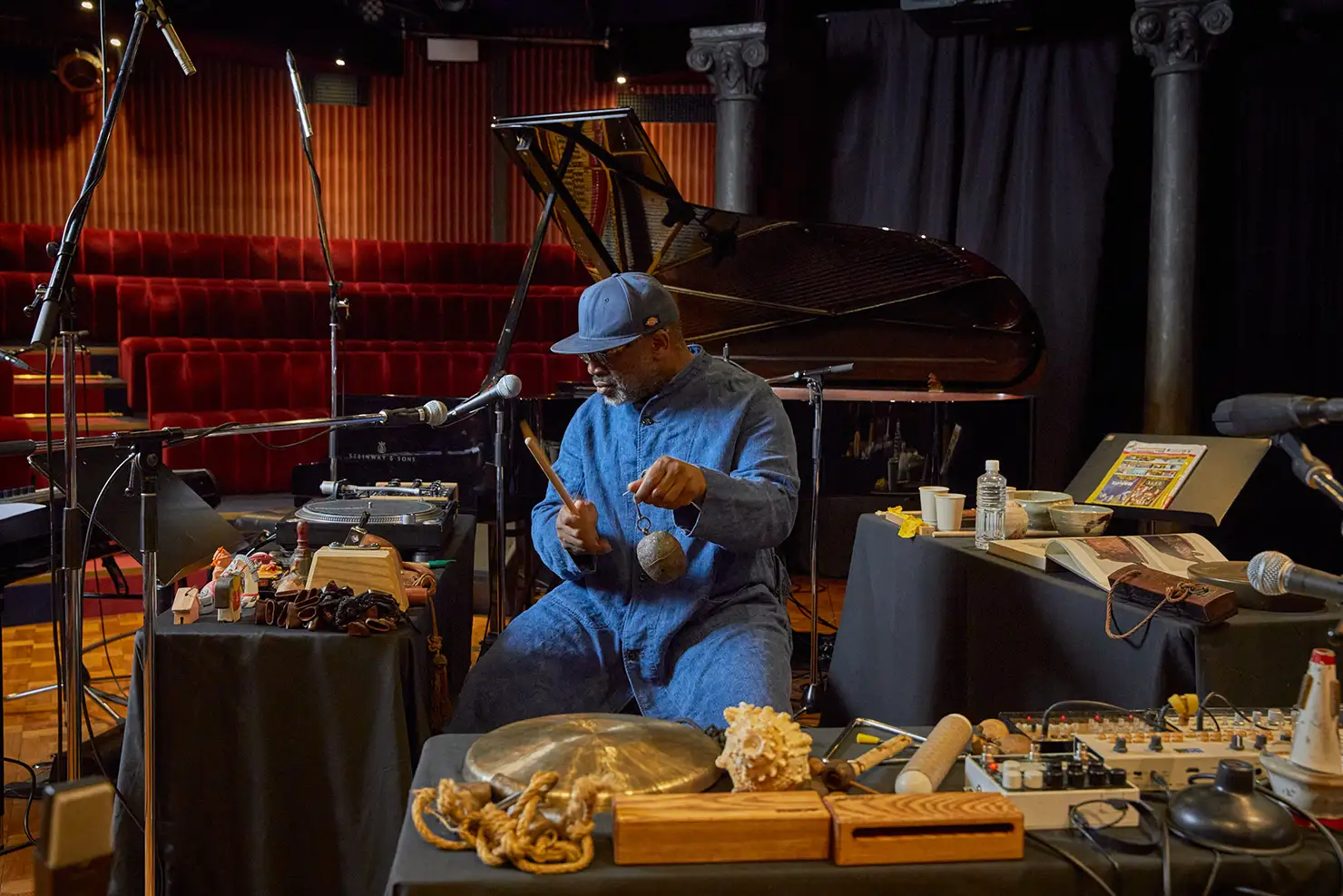 今回、シアスター・ゲイツのザ・ブラック・モンクス(The Black Monks)をはじめとした音楽活動にフォーカスを当ててインタビューを実施。ゲイツは民藝や東洋的なものにどのような可能性を見出しているのか、新しい音楽を創出すること、音楽的イノベーションに必要なものとは何か……森美術館での展示の会期最終日、BAROOMで関係者を招いて行われたライブレコーディングの直前に話を聞いた。
