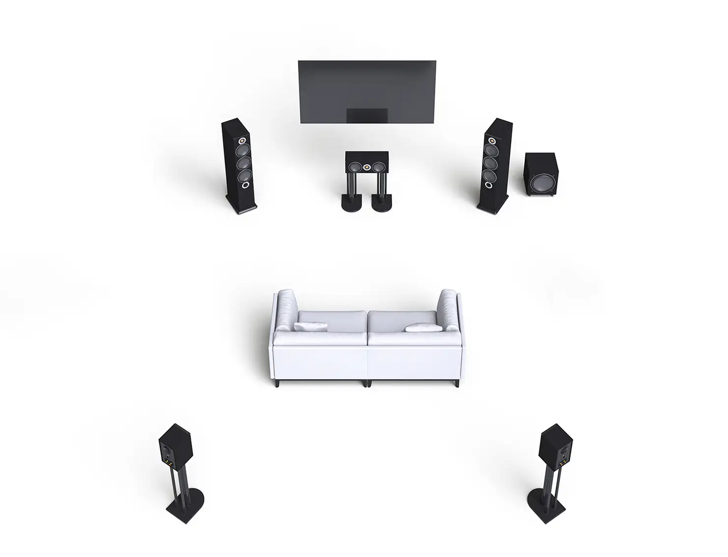 また、先程少し話した「スピーカーの本数を減らす」ことも、AVアンプの内部処理で可能になります。本来5.1chやそれ以上のチャンネル数で収録されたサラウンド音声を、より少ないスピーカーに割り当てることが可能なのです。