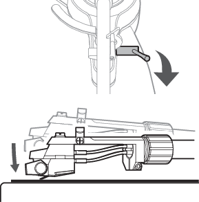 將唱臂抬升控制桿移至DOWN位置,放下唱臂。