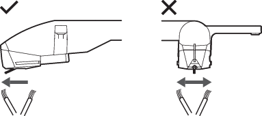 - We recommend using a stylus cleaner (sold separately by Audio-Technica) if the stylus tip is considerably dirty. Clean the stylus tip by moving the brush from the rear to the front of the stylus tip.