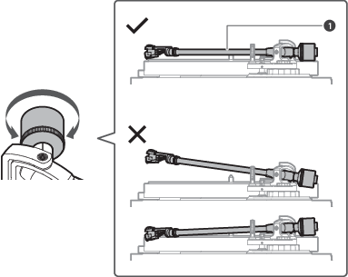 - 調整平衡,以便在釋放唱頭蓋時使唱臂保持水平。