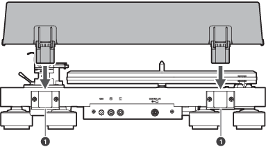 請將防塵蓋鉸鏈插入本體後方的兩個防塵蓋鉸鏈座內。