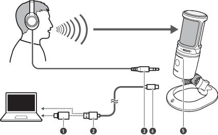- 確認靜音指示燈亮藍色(準備進行音訊輸入)。