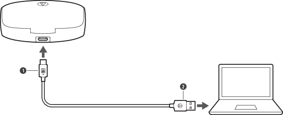 將隨附之USB充電線(USB Type-A端)連接至電腦,開始充電。