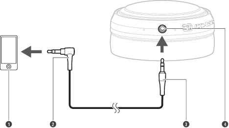 本產品具有直接播放功能,即使本產品的電量耗盡,仍可以將其用作便攜型耳機來播放音樂。您可將隨附導線的端子插頭連接至本產品的端子插孔,然後將輸入插頭連接至便攜型播放器。