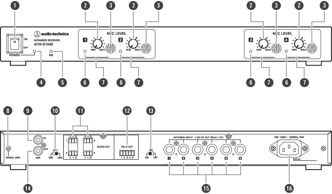 マイクロホンの信号を受信すると緑色点灯します。