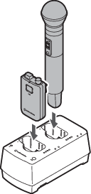 - 為手握式發射器充電時,請在連接麥克風音頭的情況下進行充電。