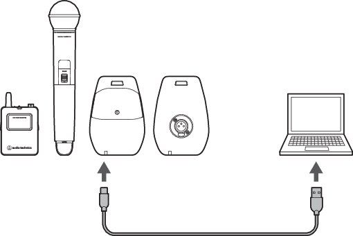 Use a USB cable to connect the USB port of the transmitter to the computer running Windows/macOS.