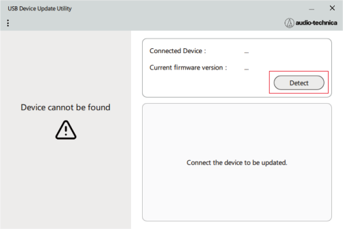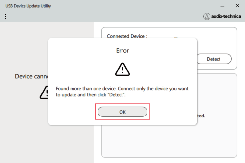 If two or more devices to be updated are connected, device detection is paused and an error is displayed. If this occurs, perform the following procedure to connect the appropriate device and complete the operation.