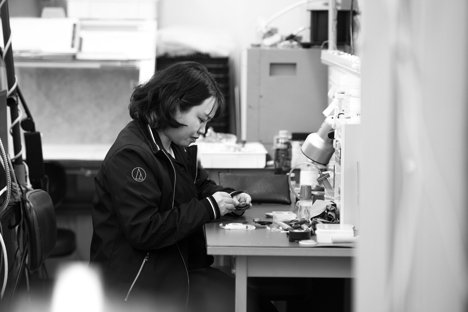 一つひとつの工程に携わることで、塩飽は自身が手掛けた製品に特別な想いを込めています。オーディオテクニカのエンジニアたちは、製品それぞれに技術と情熱を注ぎこみ、人の心に響く音を追求しています。塩飽は映像の中でこう語ります。「自分が手掛けた製品が世界に届けられることに、大きな誇りを感じます。あるイベントでお客様に”このシリーズ、私が開発にかかわったんです”と伝えた際、涙を流された方がいました。非常に感動的な瞬間でした。」