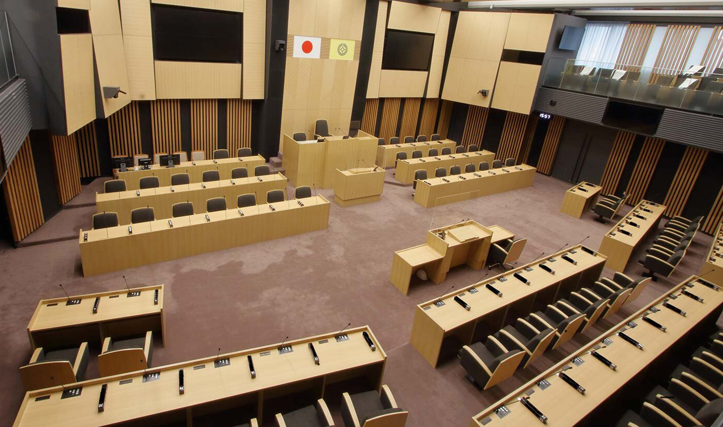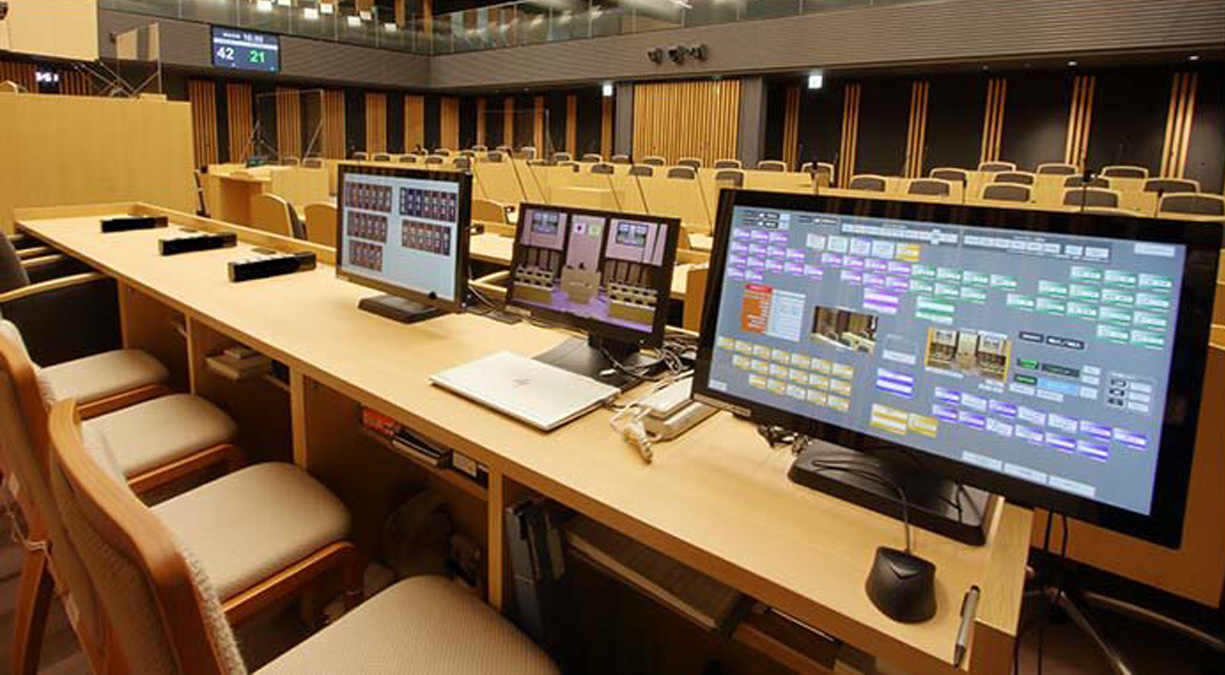 省力化・省スペース化を図り、議会に集中できる環境と質の高い情報展開を両立する議場システムを導入。