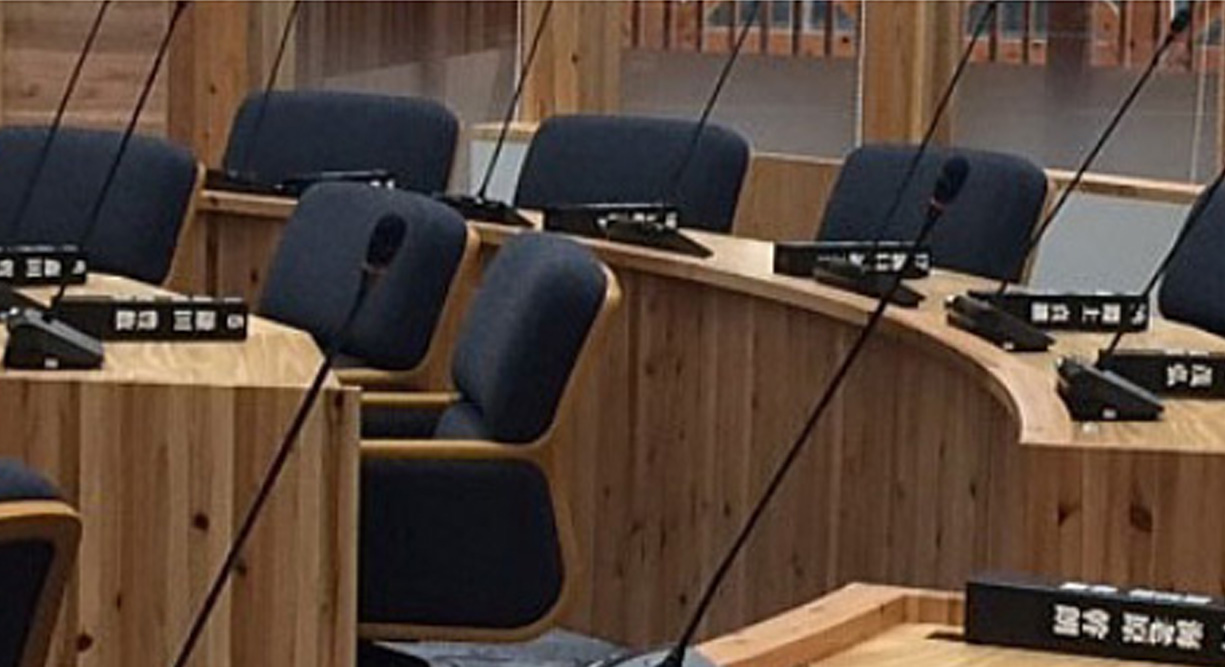 省力化・省スペース化を図り、議会に集中できる環境と質の高い情報展開を両立する議場システムを導入。
