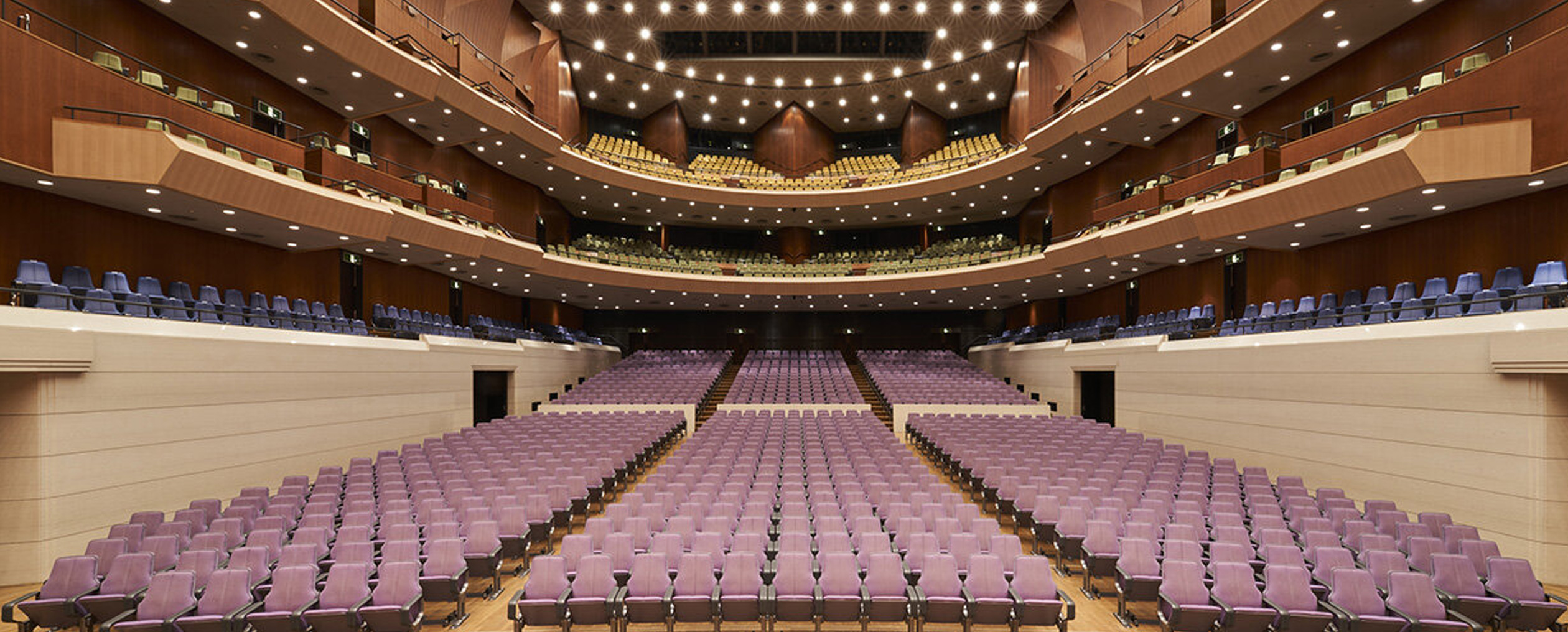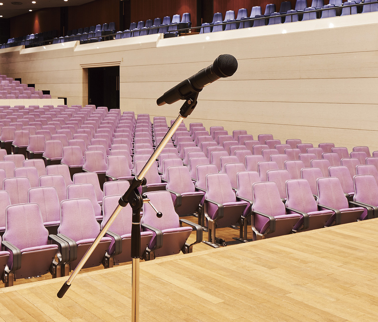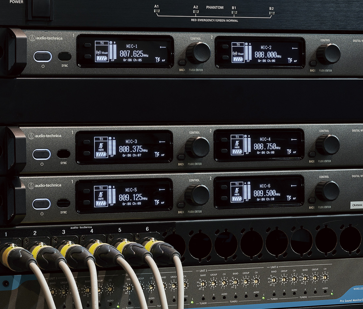 大ホールに、800MHz帯デジタルワイヤレスシステム 3000 DIGITAL SERIES が採用されました。ワイヤレスレシーバーは舞台下手に設置。運用時には別フロアの音響室で、専用ソフトウェアの「Wireless Manager」を使いモニタリングしています。音質だけでなく、コストパフォーマンスも高い評価をいただいています。