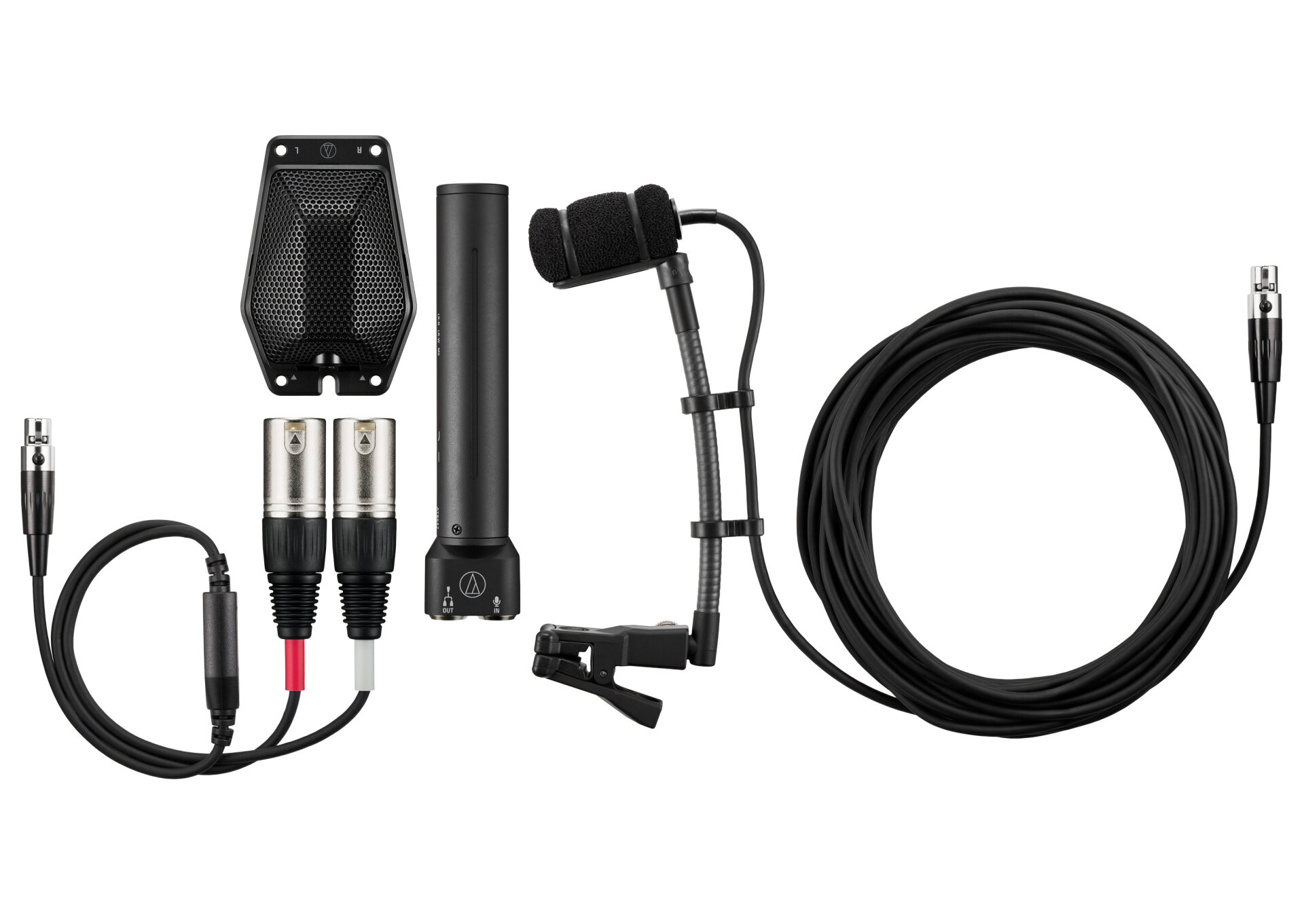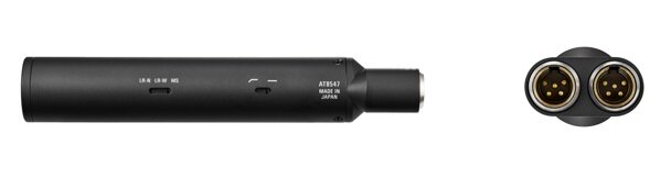 どちらの製品も付属のパワーモジュール『AT8547』のスイッチにより、MS出力、ワイドステレオ、ナローステレオの切り替えが行えます。80Hzハイパスフィルターのオン/オフも選択でき、ファントム電源対応プリアンプへの接続に対応したTA5F Mini XLR5 - XLR3変換ケーブルも付属しています。